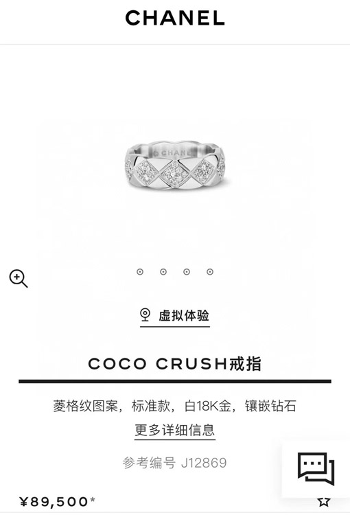 Chanel diamond pattern white gold ring-3753