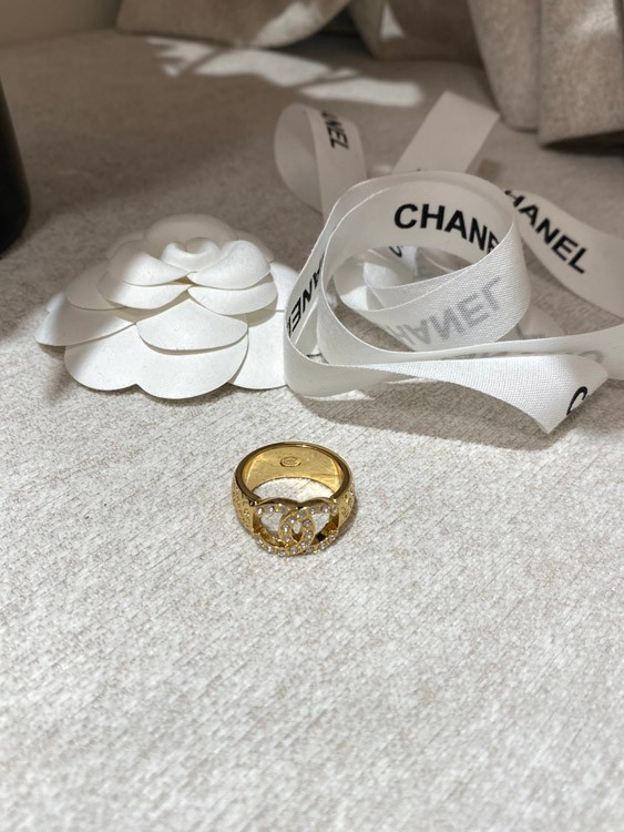Chanel gold letter embossed double C diamond double-sided wearable ring-3591