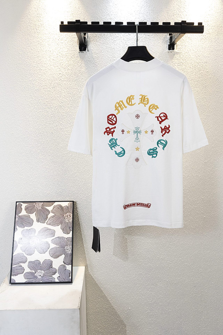 Chrome Hearts CH new colorful Sanskrit letter embroidered short-sleeved T-shirt-5418