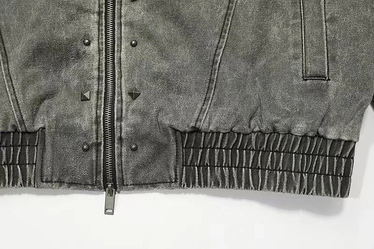 Darkage new washed and distressed hooded jacket with rivets-5013