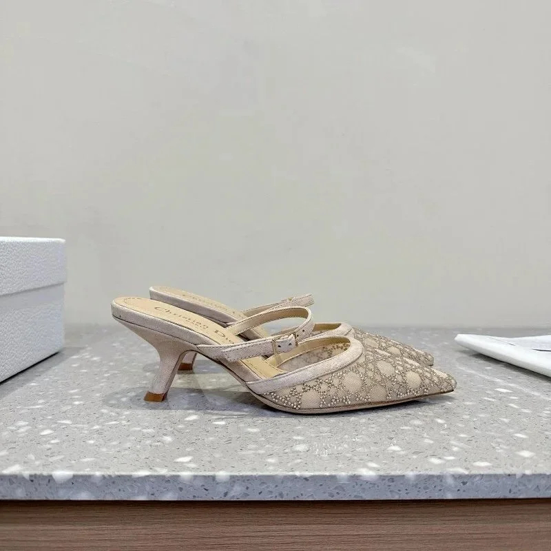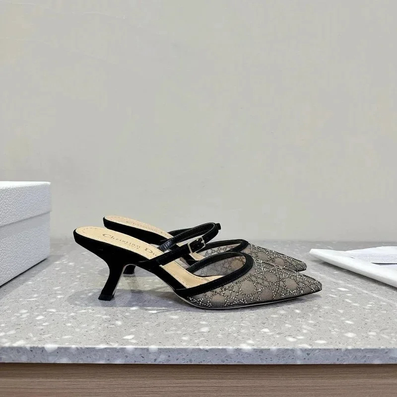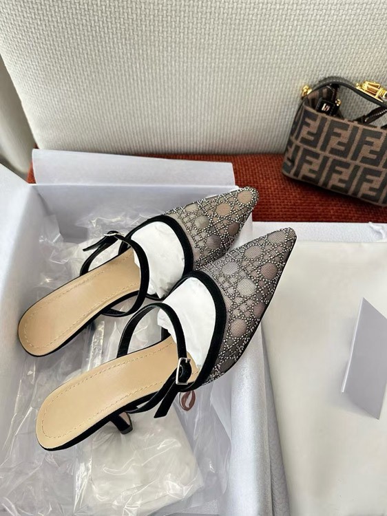 Home > DIOR Capture pointed-toe mesh slingback kitten heels with rhinestone embellishments-5207