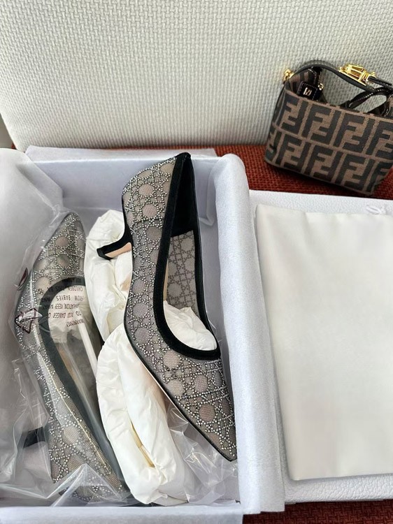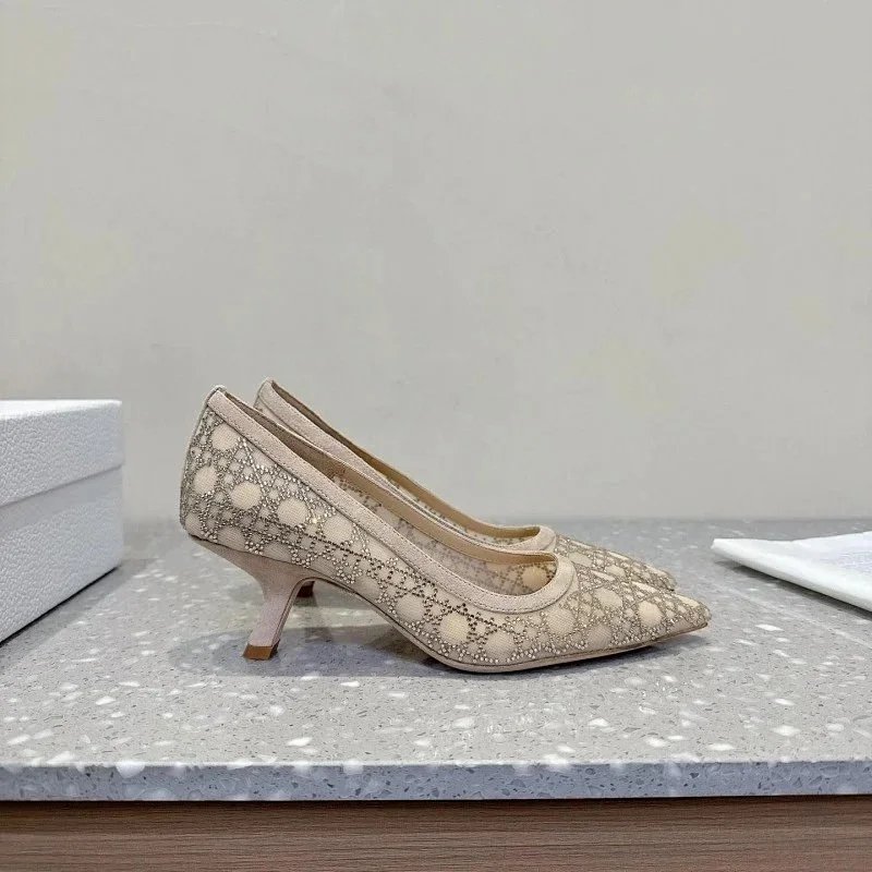 DIOR Capture pointed-toe mesh slingback kitten heels with rhinestone embellishments-5207