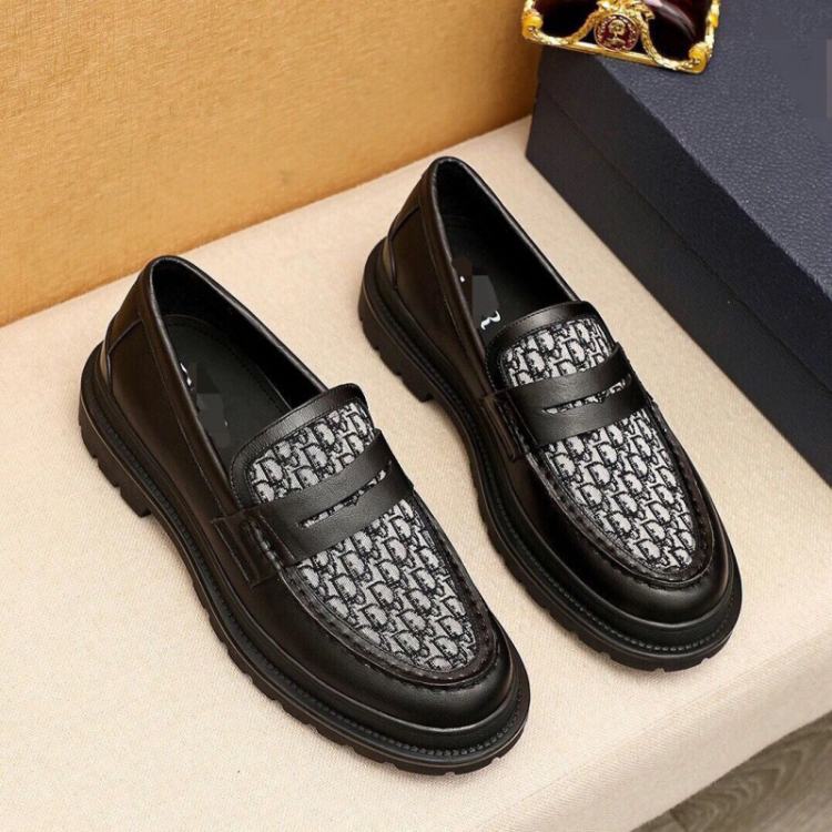 Dior new leather and canvas patchwork slip-on casual shoes-5748