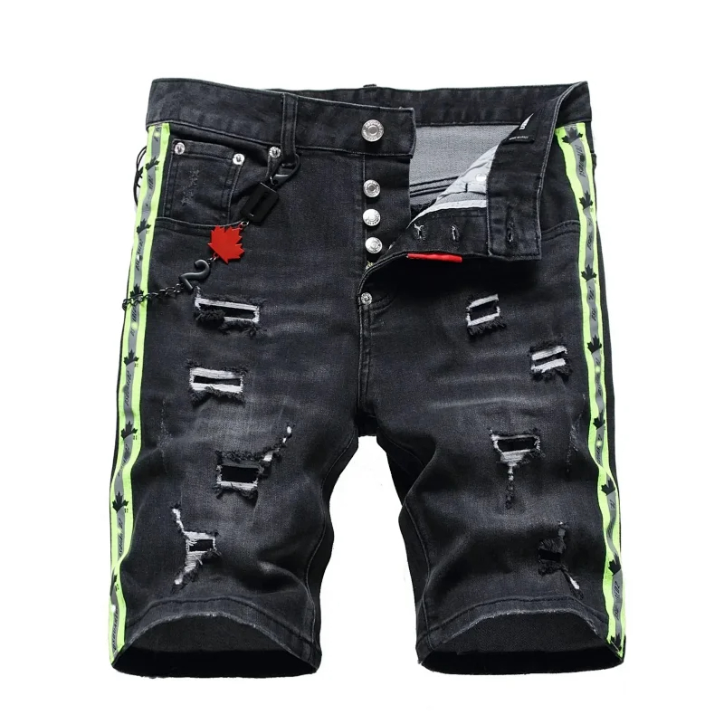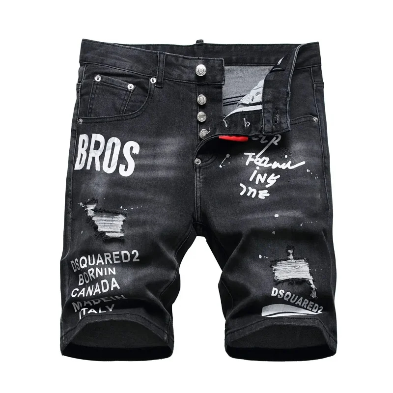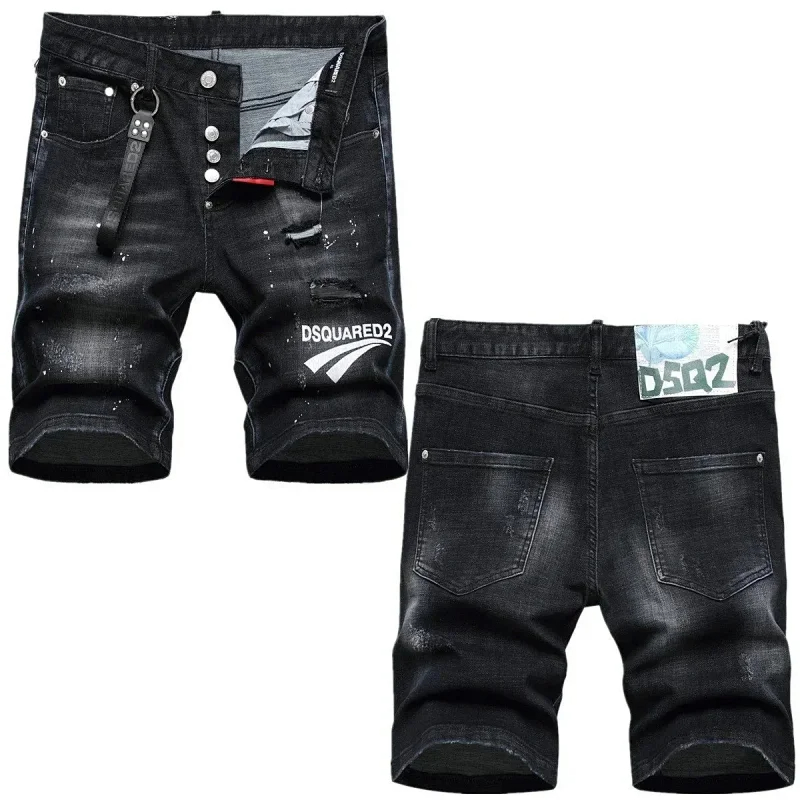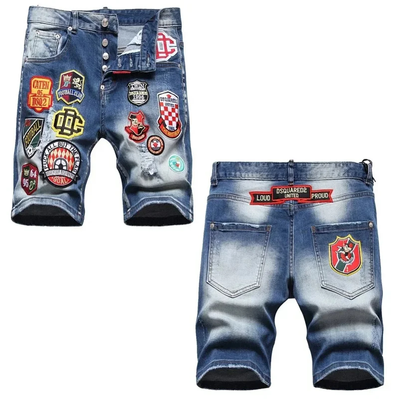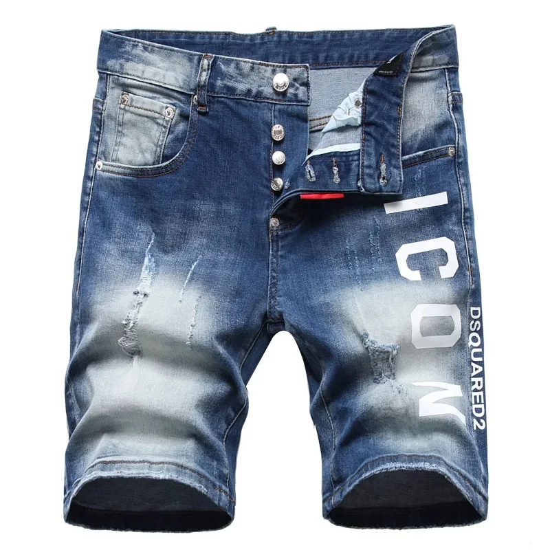 Home > Dsquared2 Washed light-colored slightly stretched letter pattern five-point jeans-2496