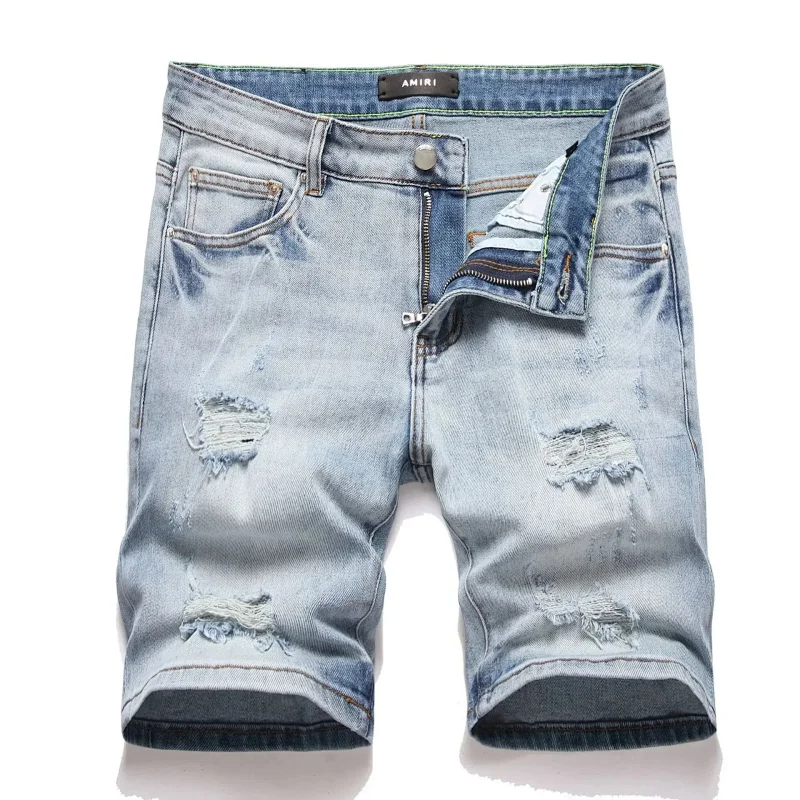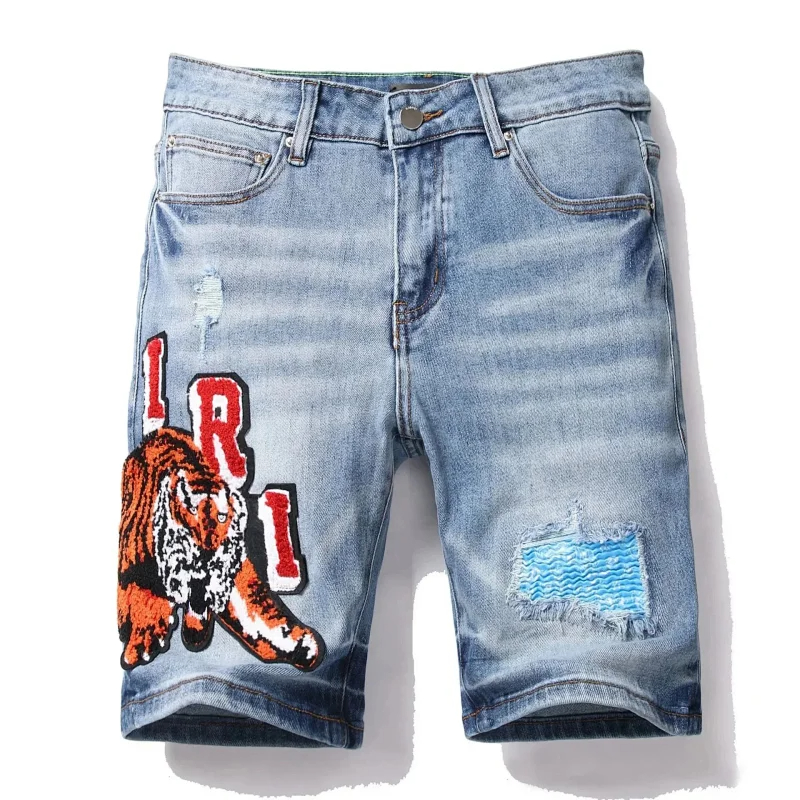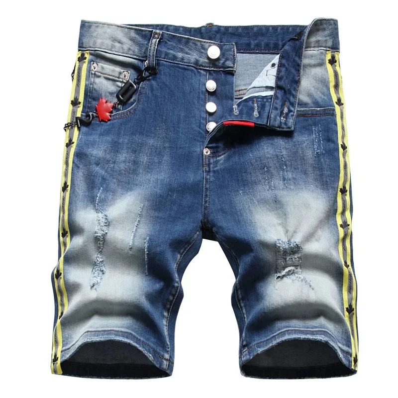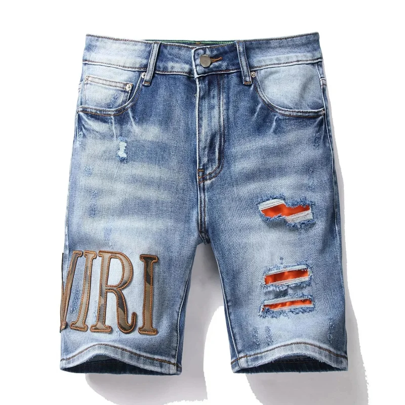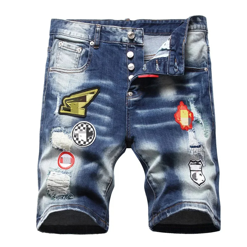 Home > Dsquared2 Washed light-colored slightly stretched letter pattern five-point jeans-2496