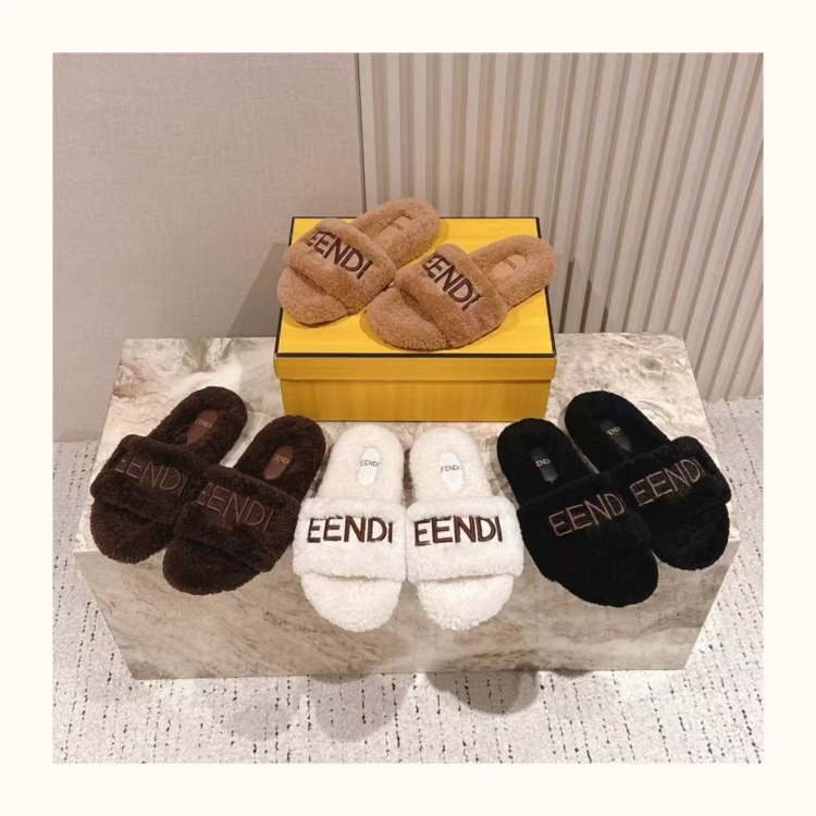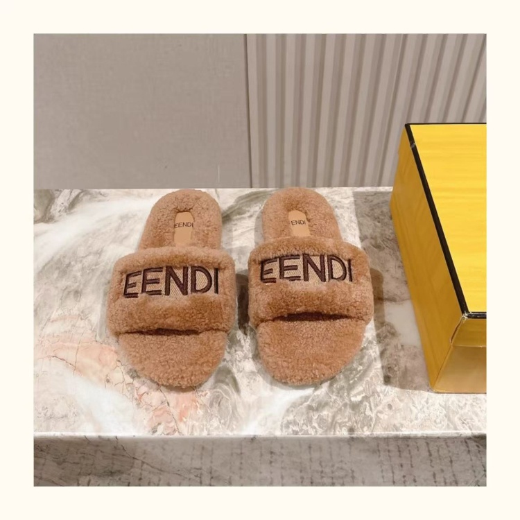 Fendi new design letter embroidered fur slippers-5689