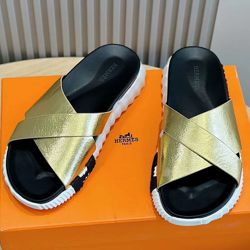 Hermes summer luxury leather flip flops Baita sandals-2334