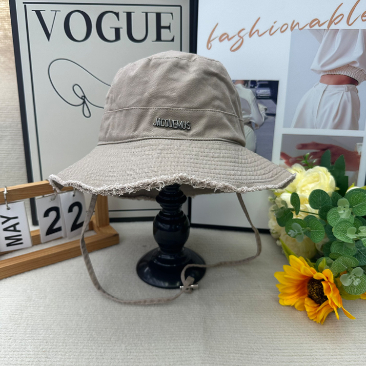 Jacquemus frayed-edge wide-brimmed bucket hat with drawstring-5982