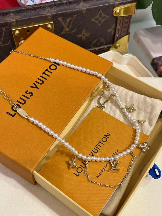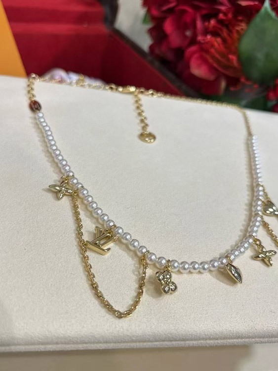 Home > Louis Vuitton LV Gold Letters Old Flower Pearl Necklace-3721