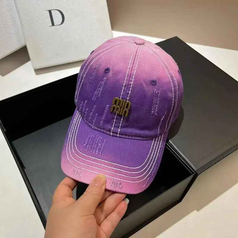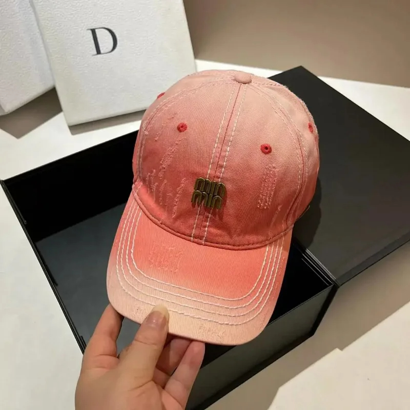 Miu Miu Distressed soft top denim cotton sun protection baseball cap-2728