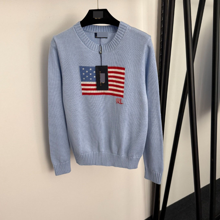 Polo Ralph Lauren new long-sleeved crewneck knit sweater with American flag pattern-5412