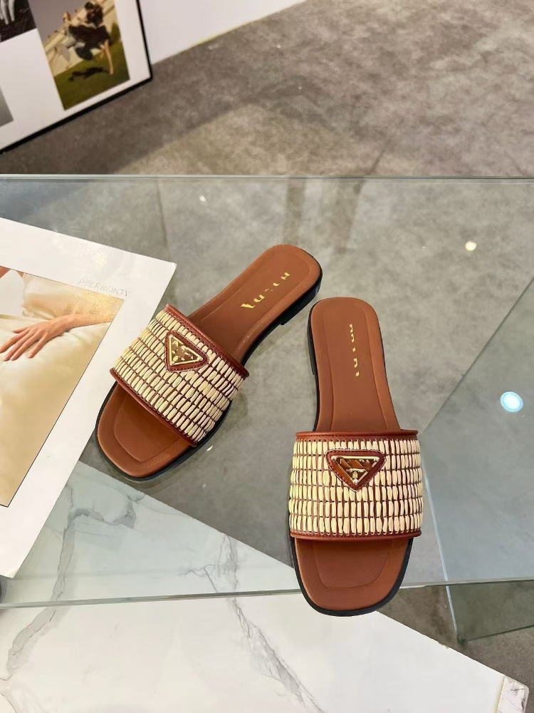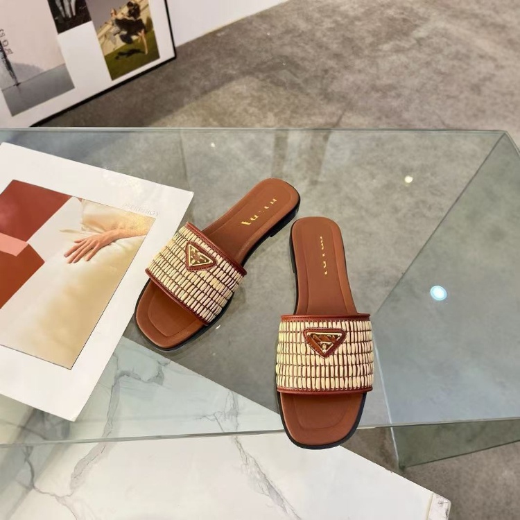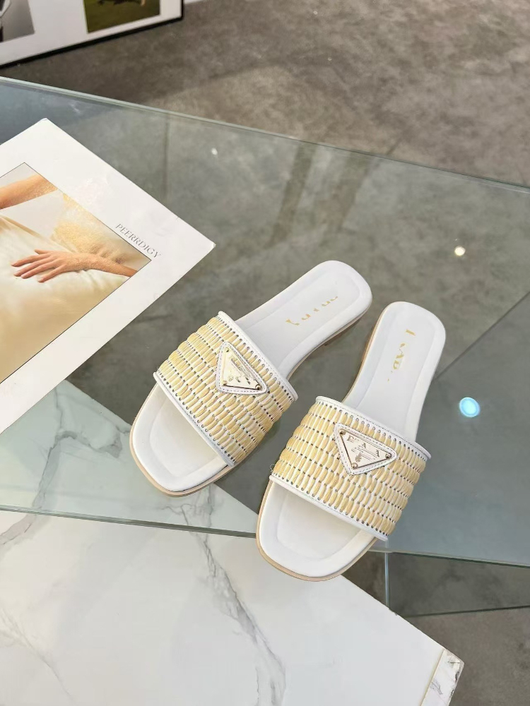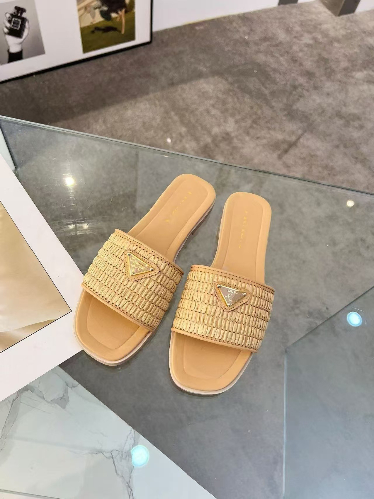 Prada new handcrafted woven flat slide sandals-5737