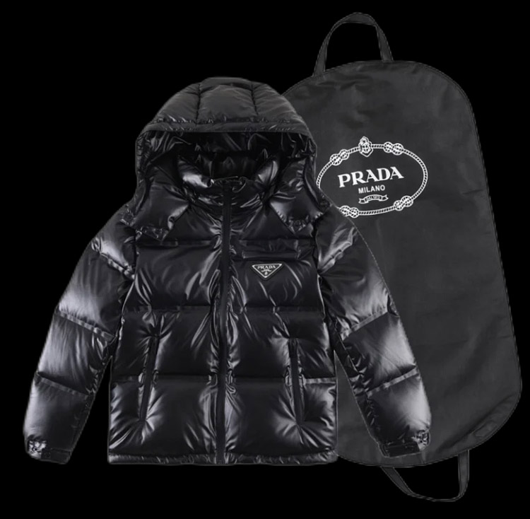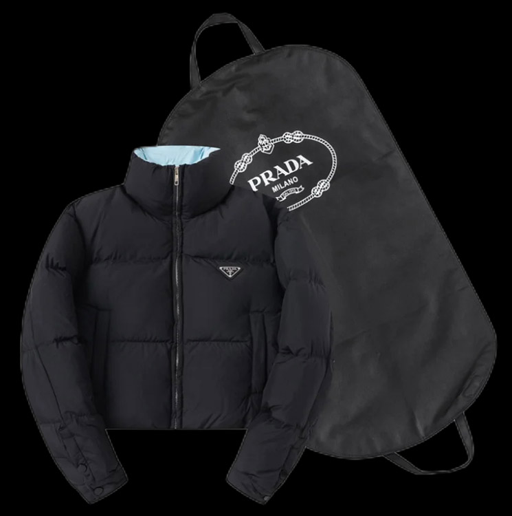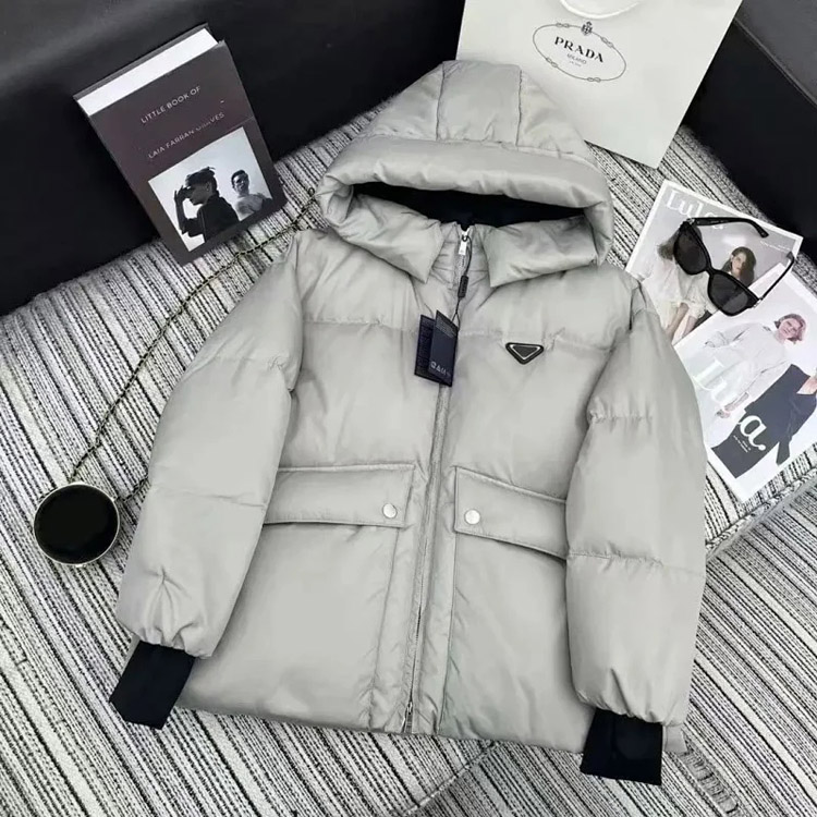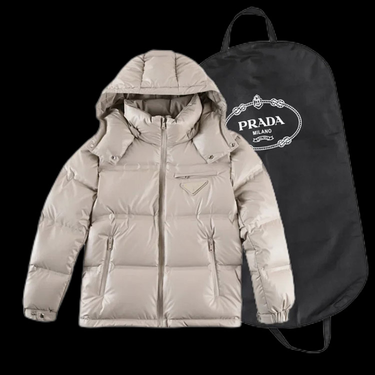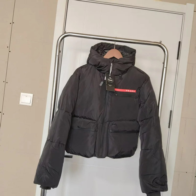 PRADA Prada Logo Badge Lapel Zipper Long Sleeve Down Jacket-4285