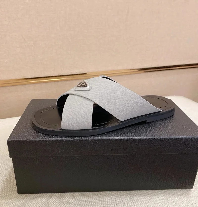 Prada Ultralight Breathable Leather Cross Slippers-5553