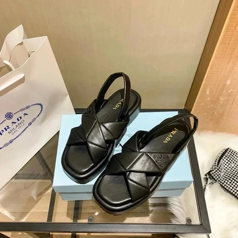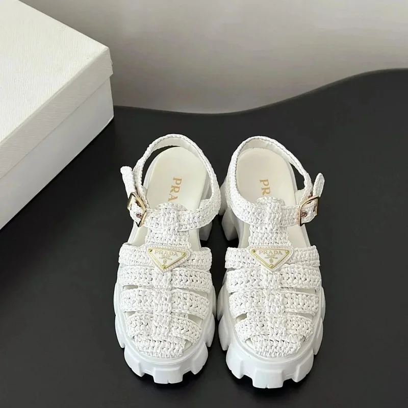 Prada's new thick-soled Roman woven European and American style height-enhancing sandals and slippers(40 styles)-2339