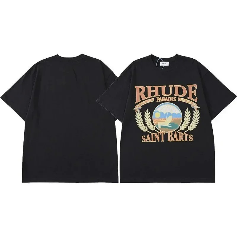 RHUDE printed round neck dropped shoulder short sleeve T-shirt (12 styles)-2773