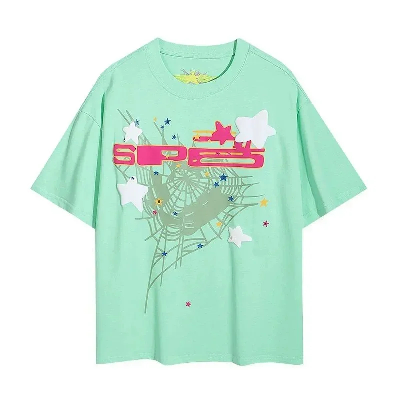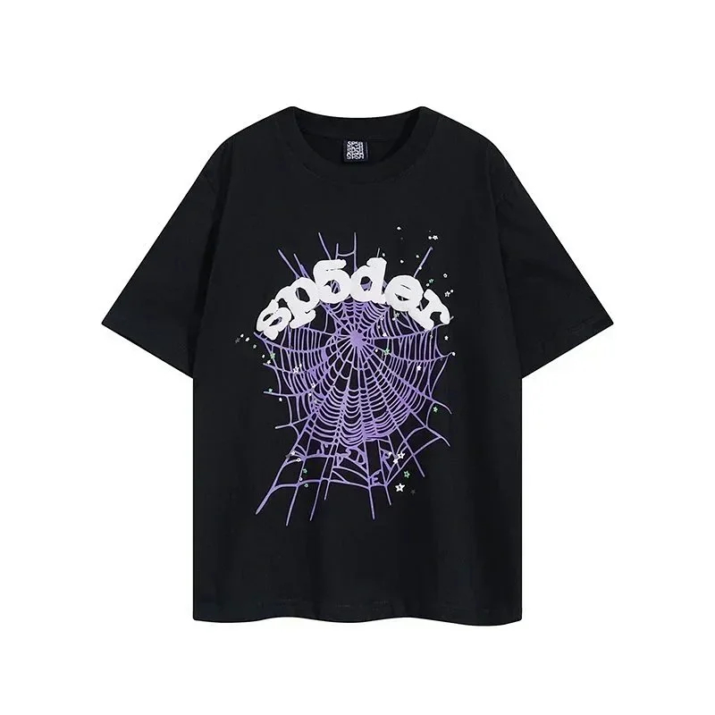 SP5DER Spider Web Foam Print Loose Casual Top T-Shirt-1861