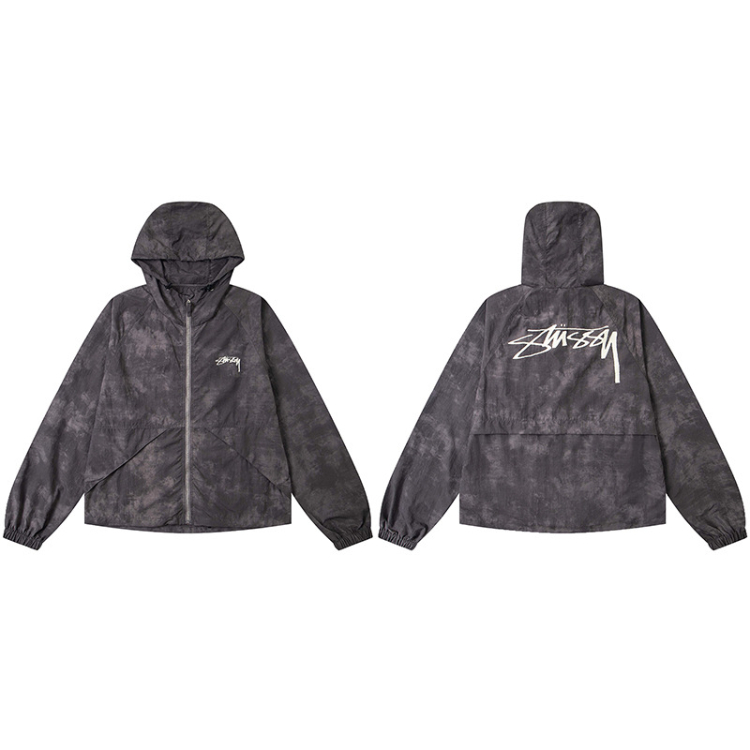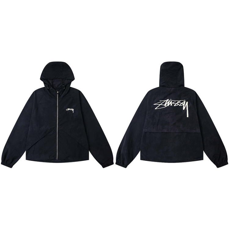 Stussy new casual loose-fitting letter print windbreaker hooded jacket-5274