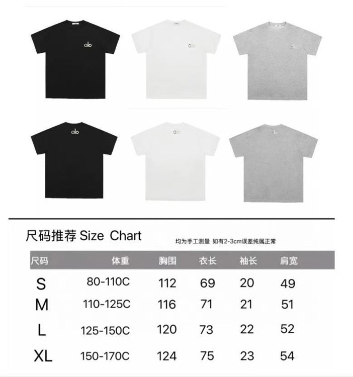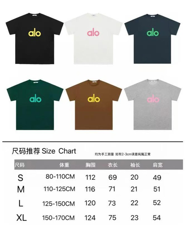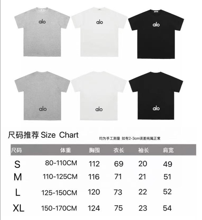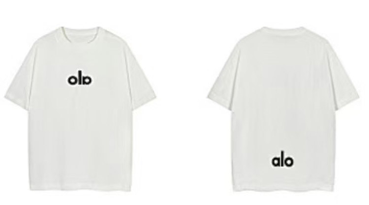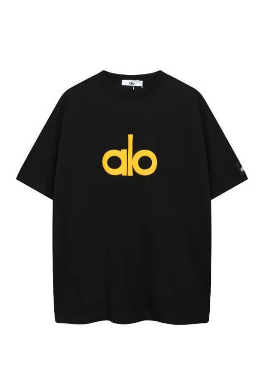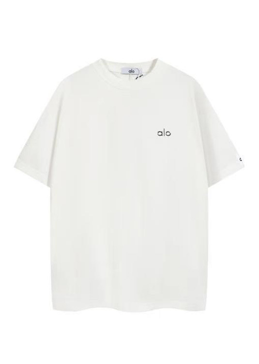 ALO Foamed Letter Hot Stamped Silver Short-Sleeved Crew Neck T-Shirt-5096