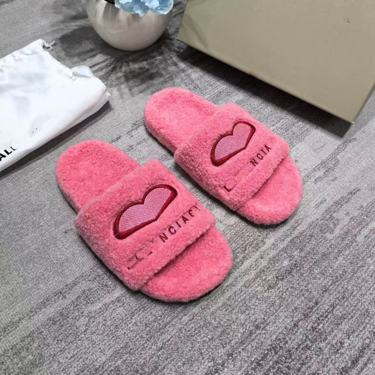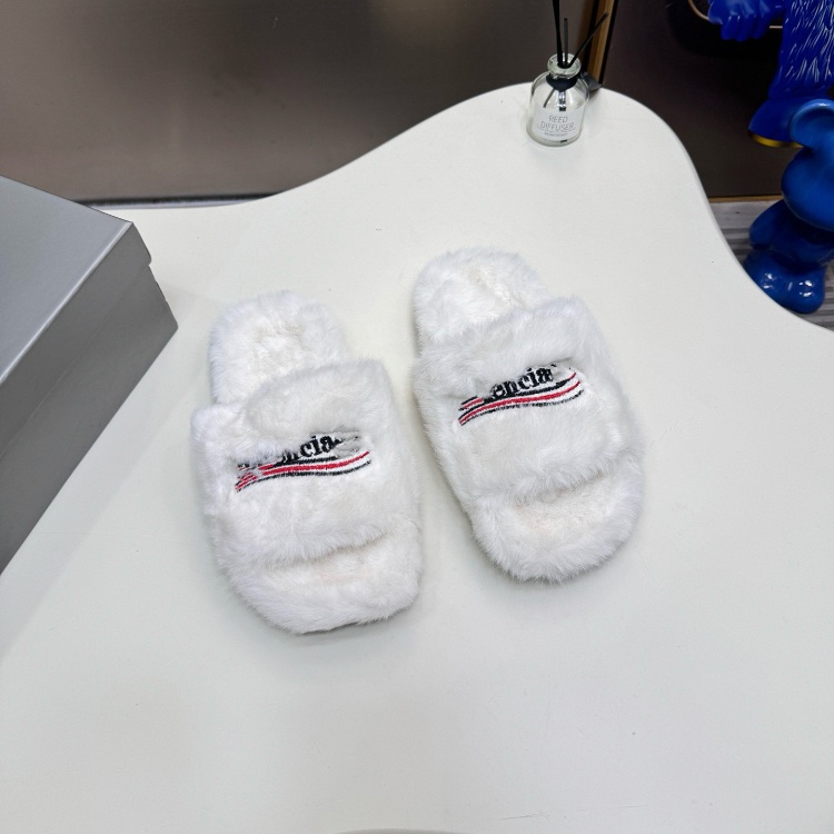 Balenciaga new embroidered logo fur-lined slip-on sandals-5690