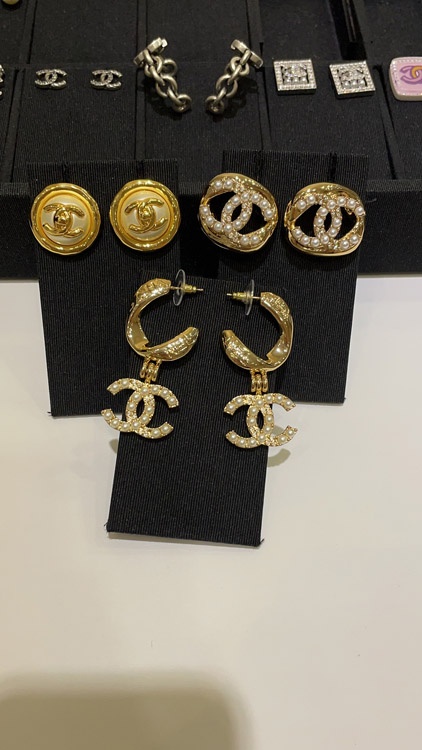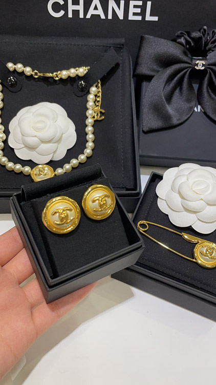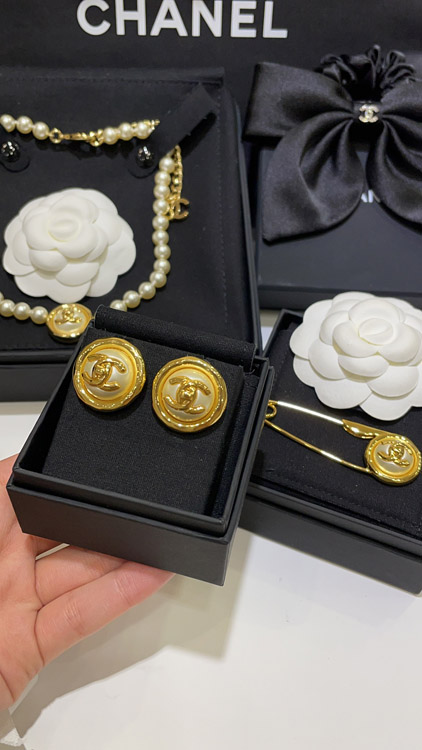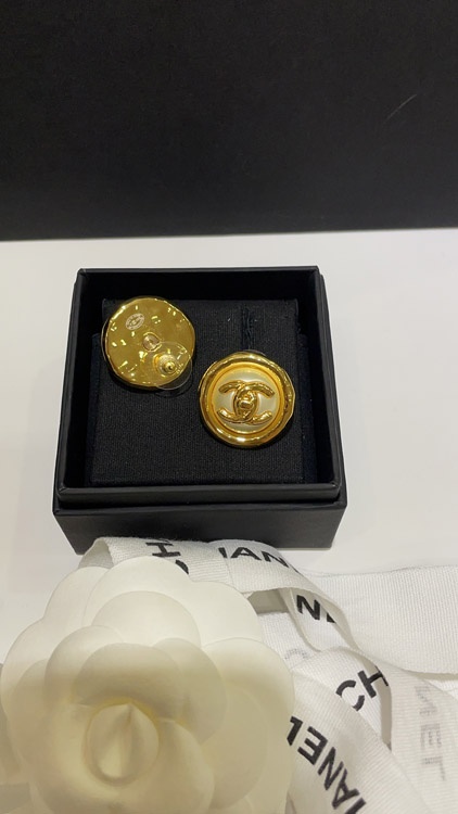 Home > Celine pearl round button gold backpack buckle double C earrings-3899