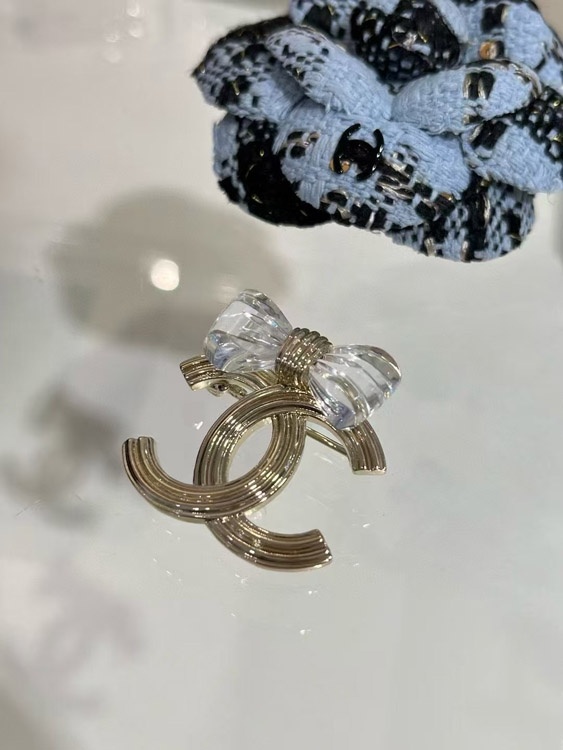 Chanel transparent acrylic bow gold double C brooch-3751