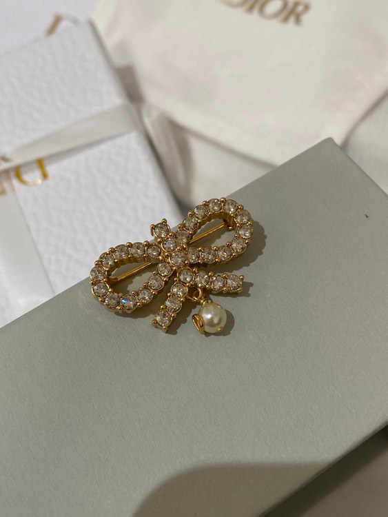 Dior full diamond bow hanging bead brooch-3954
