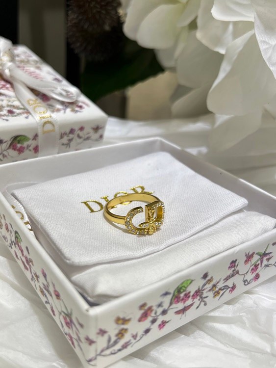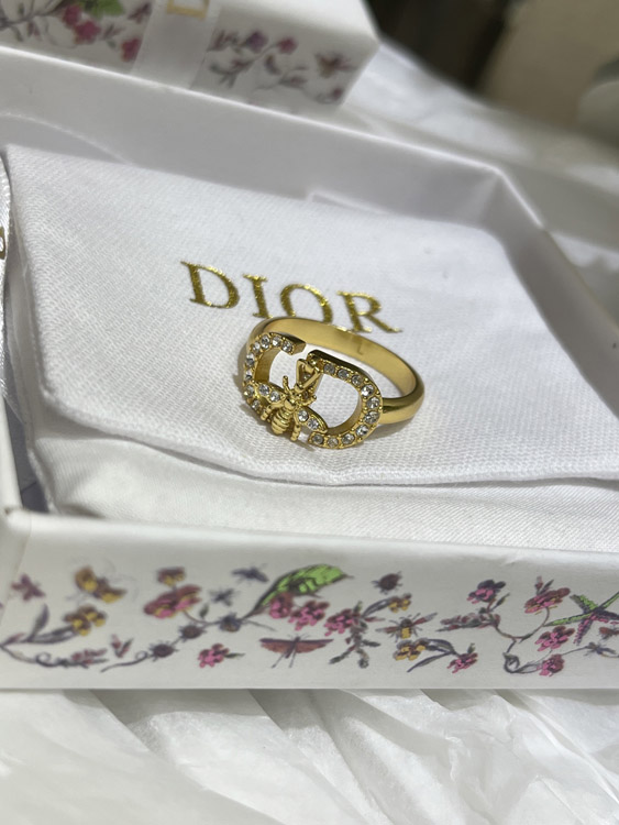 Dior gold full diamond bee pendant ring-3705
